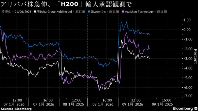 アリババ株急伸、中国によるエヌビディア製「H200」輸入承認観測