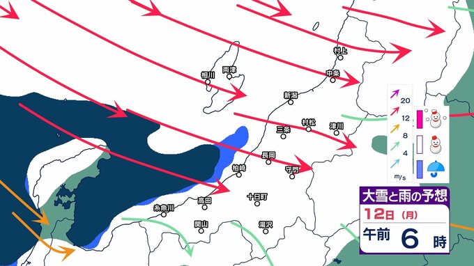 【 新潟の大雪予報 】12日夜までに中越山沿いで70cm、平地30cm 上越山沿いでも60cm…