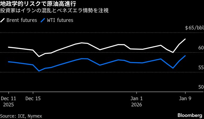 原油相場は3営業日続伸-イランの抗議活動拡大で供給に懸念