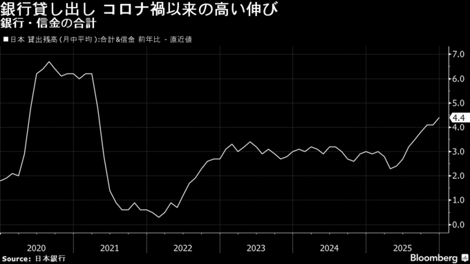 銀行貸出の増勢続く、12月はコロナ禍以来の高水準-日銀利上げを支援
