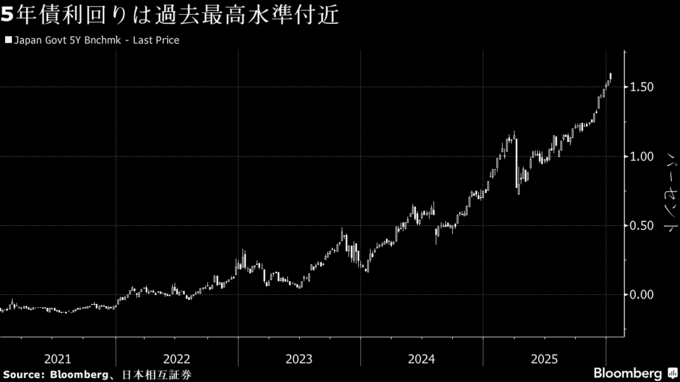5年債利回り過去最高1.615%に上昇-衆院解散観測で財政拡張懸念