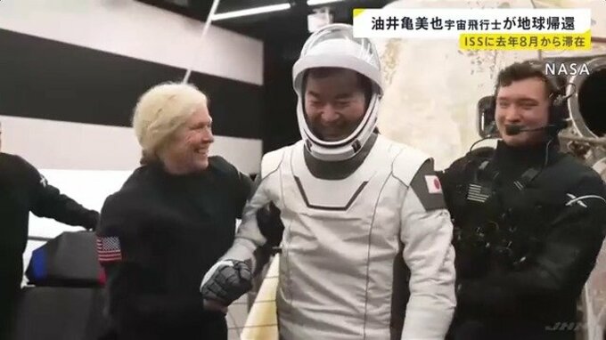 「人生で最も輝いていた瞬間」宇宙飛行士・油井亀美也さん 地球に帰還 笑顔で手を振る 約5か月ISSに滞在