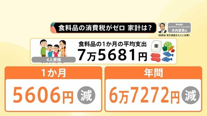 食料品「消費税ゼロ」4人家族で年間6万7272円減の試算、迫る選挙と「5兆円の減収」という厳しい現実【Nスタ解説】