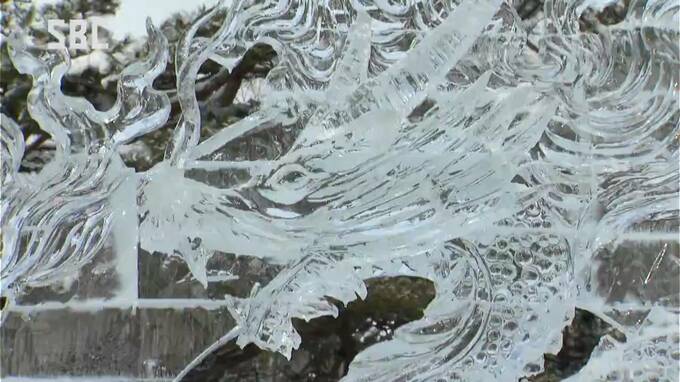 松本城をバックに…氷のアート作品 松本市で「氷彫フェスティバル」にぎわう 長野