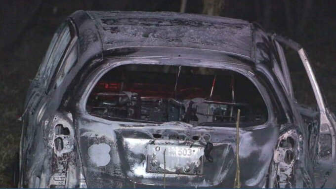 「家の裏で車が燃えている」”エンジン空ふかしが原因か”路上で乗用車1台全焼 けが人なし 宮城・大河原町