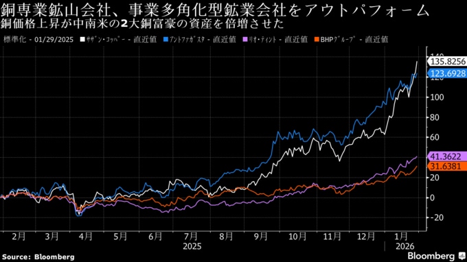 中南米の銅富豪2人、資産1年で倍増-銅高で保有企業の株価が急伸