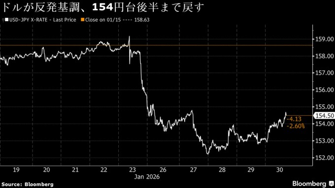 円が軟調、対ドルで一時1%超える下げ-154円台後半
