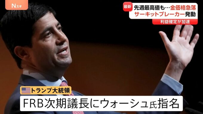 金価格が急落 3500円以上も値下がり 「サーキットブレーカー」発動も “FRB人事”で利下げに対する不透明感が拡大
