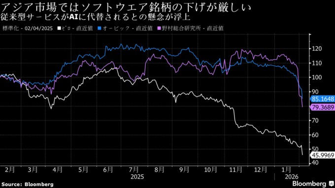3. アジア市場でソフトウエア株下落、AI拡大でSaaS事業モデルに懸念