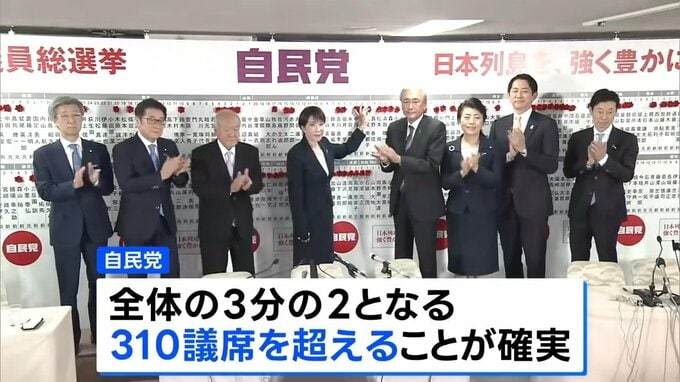 【速報】自民党が単独で「3分の2」にあたる310議席を得るのが確実 参議院で否決された法案を自民単独で衆議院で再可決可能に