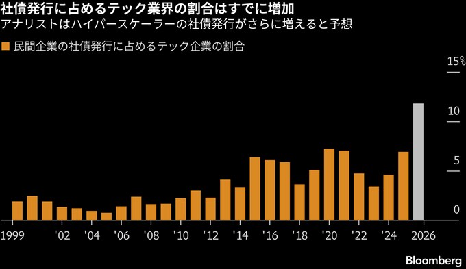 米テックAI巨額起債、パッシブ型ファンドを脅かす恐れ-集中リスクも