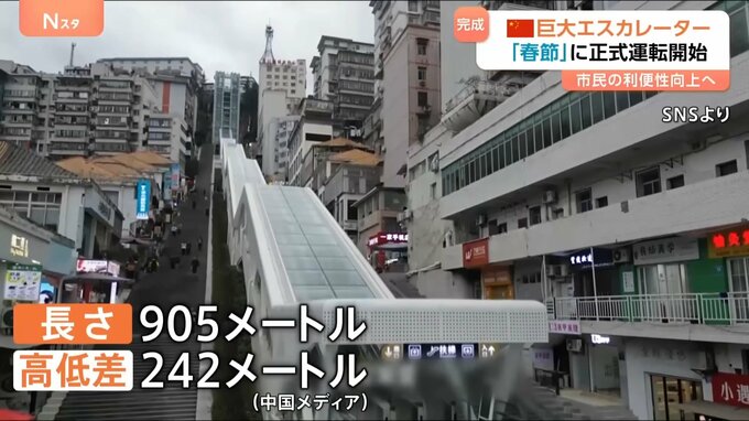 中国・重慶に巨大エスカレーター誕生 「春節」に正式運転開始へ