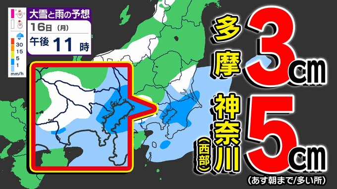 【東京23区も積雪か?】多摩3cm 神奈川西部5cm 夕方から平地も積雪のおそ…