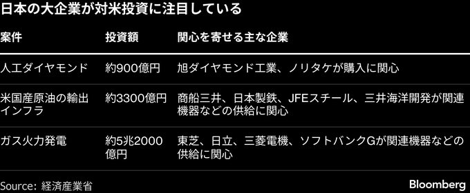 対米投資が始動、ガス発電に東芝やソフトバンクG関心-総額5.5兆円