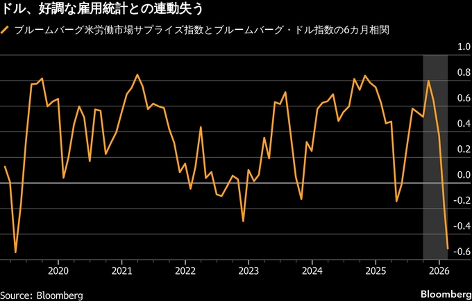 ドルと米雇用の相関関係が転換-元ゴールドマンのストラテジスト