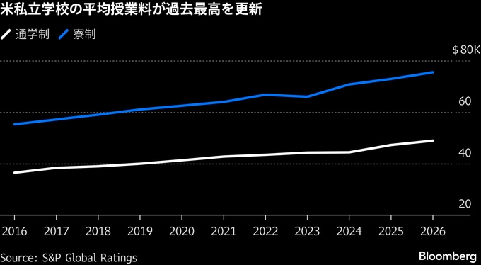 米国の私立学校、年間授業料が過去最高を更新-5万ドルに接近