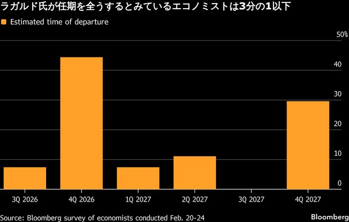 3. ラガルド氏早期退任、エコノミスト過半数が予想-ブルームバーグ調査