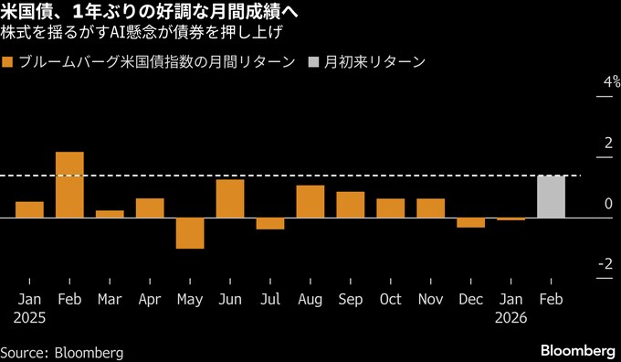 米国債、1年ぶり大幅高-質への逃避で利回り2022年以来の低水準