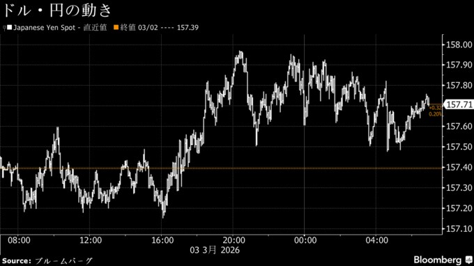 円は対ドル157円台半ば、有事のドル買い続き158円が焦点-債券反発へ