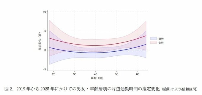 コロナ前後の平均通勤時間の変化に男女・年齢層による差はみられるか