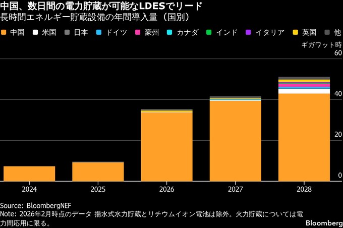数日間持続する蓄電池の世界的開発競争、中国が大きくリード
