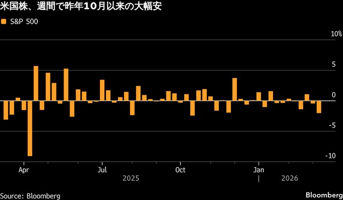 【米国市況】株続落、雇用統計や信用不安が重し-原油の上昇止まらず