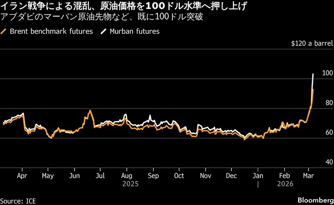 原油市場の混乱深刻化、湾岸減産拡大とホルムズ封鎖で100ドル視野