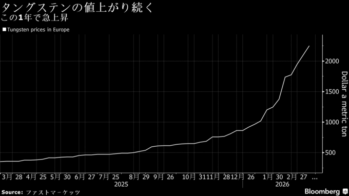 兵器用金属タングステン、557%急騰で金や銅しのぐ-イラン戦争も拍車