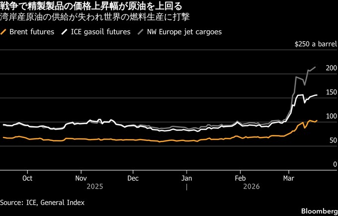 史上最大の石油市場への衝撃、燃料に最も影響-ゴールドマンが警鐘