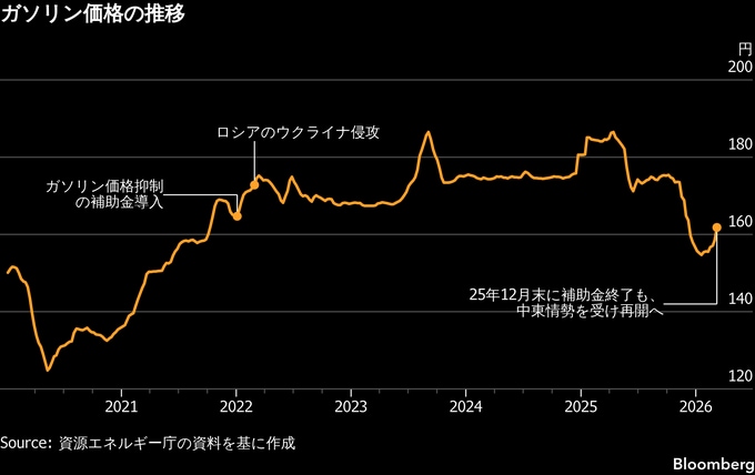 ガソリン価格はいつ下がる?小売価格は200円超も-政府補助の効果は