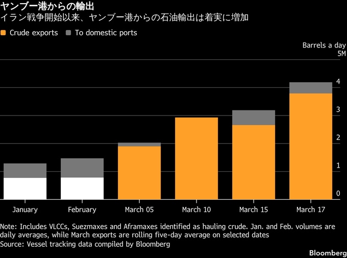3. サウジの石油輸出、戦争前の6割近くを回復-ホルムズ回避ルートで
