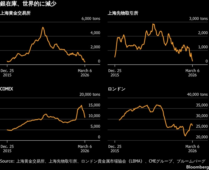 中国の銀需要旺盛、1~2月の輸入は8年ぶり高水準-実需持続を示唆