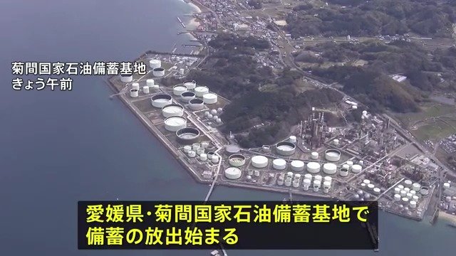 【速報】石油の国家備蓄を放出開始 経済産業省 愛媛県今治市の菊間備蓄基地からパイプラインで隣接する民間製油所へ