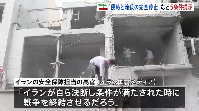 「侵略と暗殺の完全停止」イラン5つの条件求める アメリカの条件は“拒否” 受け入れられるまで「交渉は行われない」「防衛作戦を継続」