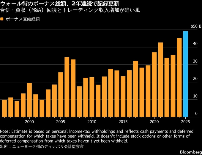 ボーナス支給額、ウォール街でまた記録更新-先行きは戦争が影落とす