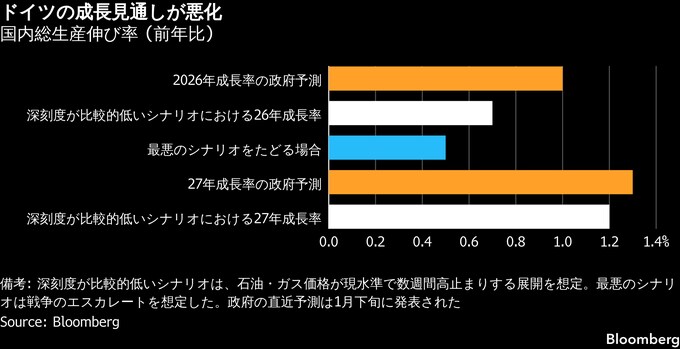 ドイツ、イラン戦争長期化なら来年の成長率は予想の半分にも-関係者