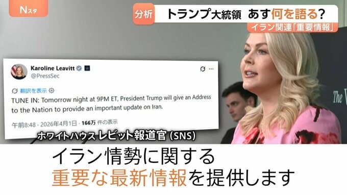 トランプ大統領 あす演説へ“イラン情勢に関する重要な最新情報を提供” 軍事作戦の目的を改めて説明か