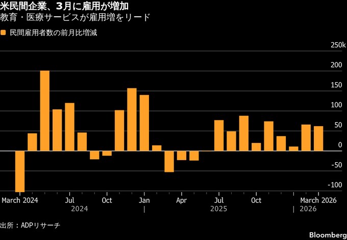 米民間雇用者、予想上回る6万2000人増加-労働市場の安定化示唆
