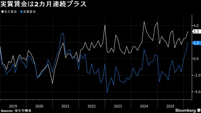 実質賃金2カ月連続プラス、21年5月以来の伸び-日銀正常化を後押し