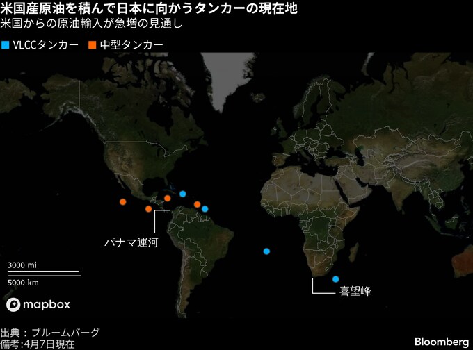 米国発の原油タンカー急増、日本に向かう船の列現れる-進む代替調達