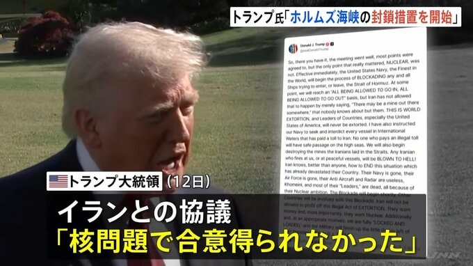 日本時間の今夜から「ホルムズ海峡の封鎖措置を開始」トランプ大統領が表明 米イラン交渉行き詰まりを打開へ“限定的な攻撃の再開”検討か