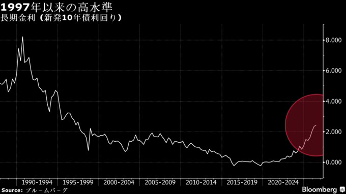 長期金利1997年以来の高水準、イラン戦争巡る不透明感やインフレ懸念