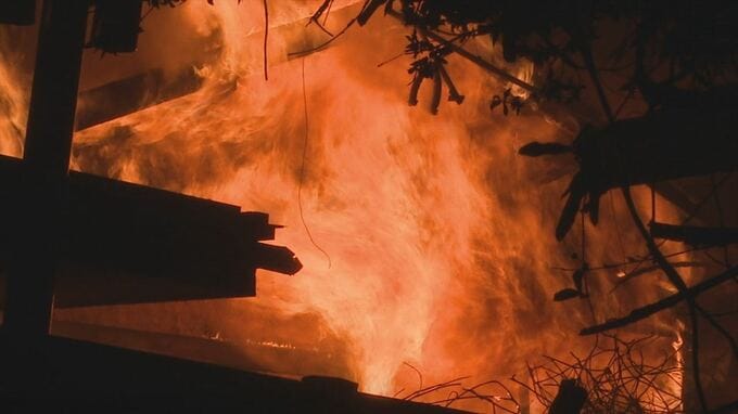 「すごかった。一気に燃えて」激しく燃え上がる炎 空き家や倉庫、車2台が全焼 山…