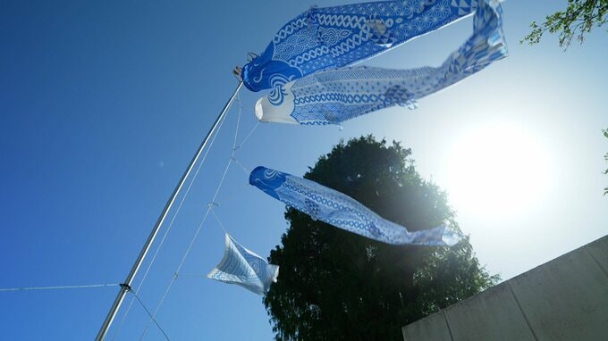 6月20日「世界難民の日」を前に池田動物園に国連カラーの青い“こいのぼり”【岡山】