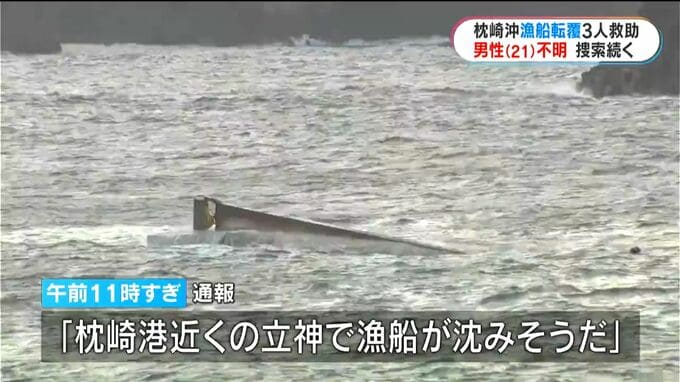 転覆当時なにが? 4人が乗った漁船が転覆 3人救助1人不明 鹿児島・枕崎沖