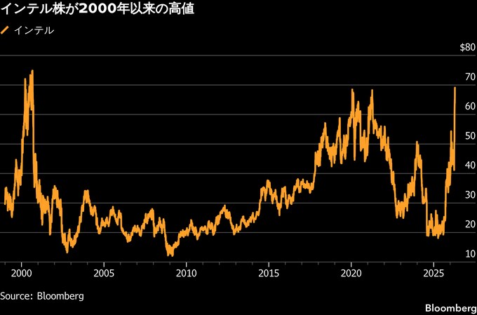 インテル株、2000年以来の高値-再建期待で回復基調続く