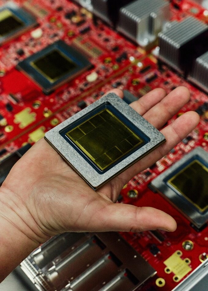 画像 1/3 グーグルのアミン・バーダット氏 写真の記事を読む スクロールで次の画像へ 画像 2/3 グーグルの最新TPUチップをテストするラック 写真の記事を読む スクロールで次の画像へ 画像 3/3 グーグルの最新TPUチップ 写真の記事を読む