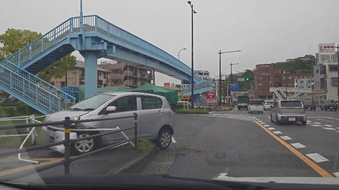 車がガードパイプ衝突 逆走か? 鹿児島市の産業道路入口交差点