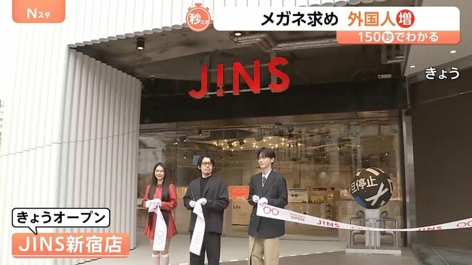 「すごい!サングラスと眼鏡がくっついてる」世界が注目 日本のメガネ、JINS新宿店オープン 1300種類の品揃え【Nスタ解説】