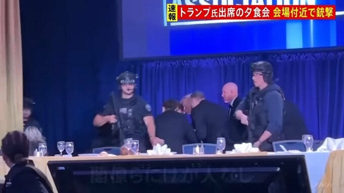 3. 【速報】トランプ大統領出席の夕食会で銃声とみられる複数回の大きな音 トランプ氏は退避し無事 自ら記者会見へ
